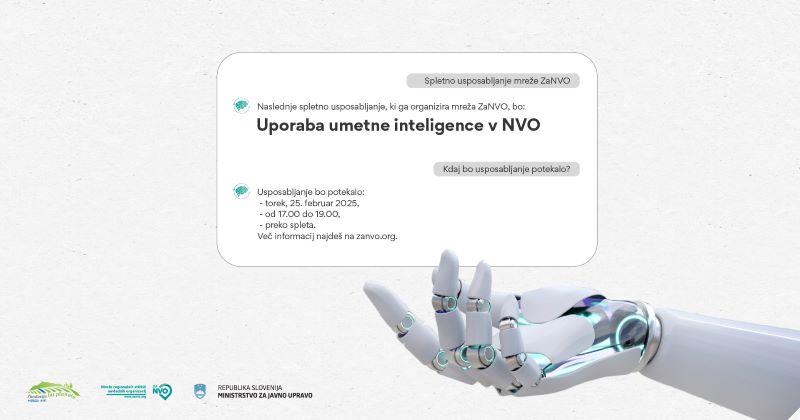 Pridružite se nam na delavnici, kjer bomo raziskovali, kako lahko umetna inteligenca (UI) podpre delo nevladnih organizacij in društev. Spoznali boste osnovne koncepte umetne inteligence na razumljiv in dostopen način, odkrivali orodja, ki vam lahko olajšajo vsakodnevno delo, ter se naučili, kako jih uporabiti za povečanje učinkovitosti in doseganje boljših rezultatov.